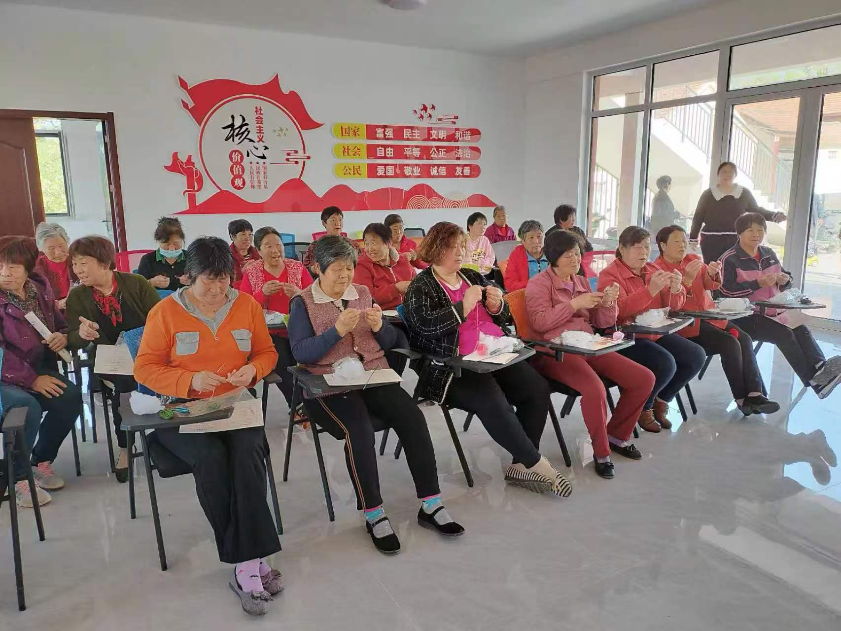 深耕文化浸润,筑牢非遗传承根基。作为基层文化指导员,张存梅始终秉持“传技艺、育文脉”的初心,在传授钩针技艺的同时,更注重红色文化的浸润与传承。“每一针都要织出洪山的红色记忆,每一线都要传承沂蒙精神。”她将沂蒙山区妇女朴实肯干、吃苦耐劳的精神融入日常教学,引导学员在一针一线的编织中感悟红色文化内涵,精心打造出一系列蕴含红色元素的特色钩织作品。为让钩针编织走出柳山、扩大影响,张存梅充分发挥基层文化建设指导员的资源链接作用,带领学员积极参加省市县级展示活动,让非遗作品在更大舞台绽放光彩。从技艺传授到文化传承,从精准帮扶到增收赋能,基层文化建设指导员张存梅以专业的服务、务实的举措,让钩针编织这门古老非遗在柳山大地重焕生机,更让红色文化与传统技艺深度融合,成为乡村文化建设的亮眼名片。