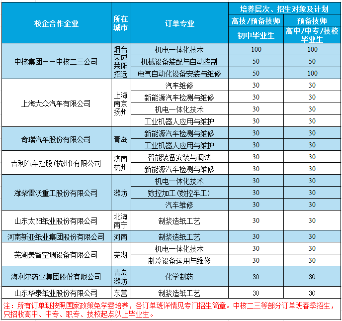 部分校企订单班招生计划