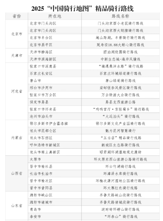 2025年12月30日,根据《中国自行车运动协会关于推荐2025年“中国骑行地图”精品骑行线路有关事项的通知
