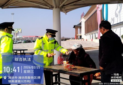 2026年春节期间,正值春运客流高峰,潍坊市交通运输综合执法支队执法人员联合青银高速潍坊西服务区工作人员在服务区开展“饺香暖归途 福字送平安”主题活动